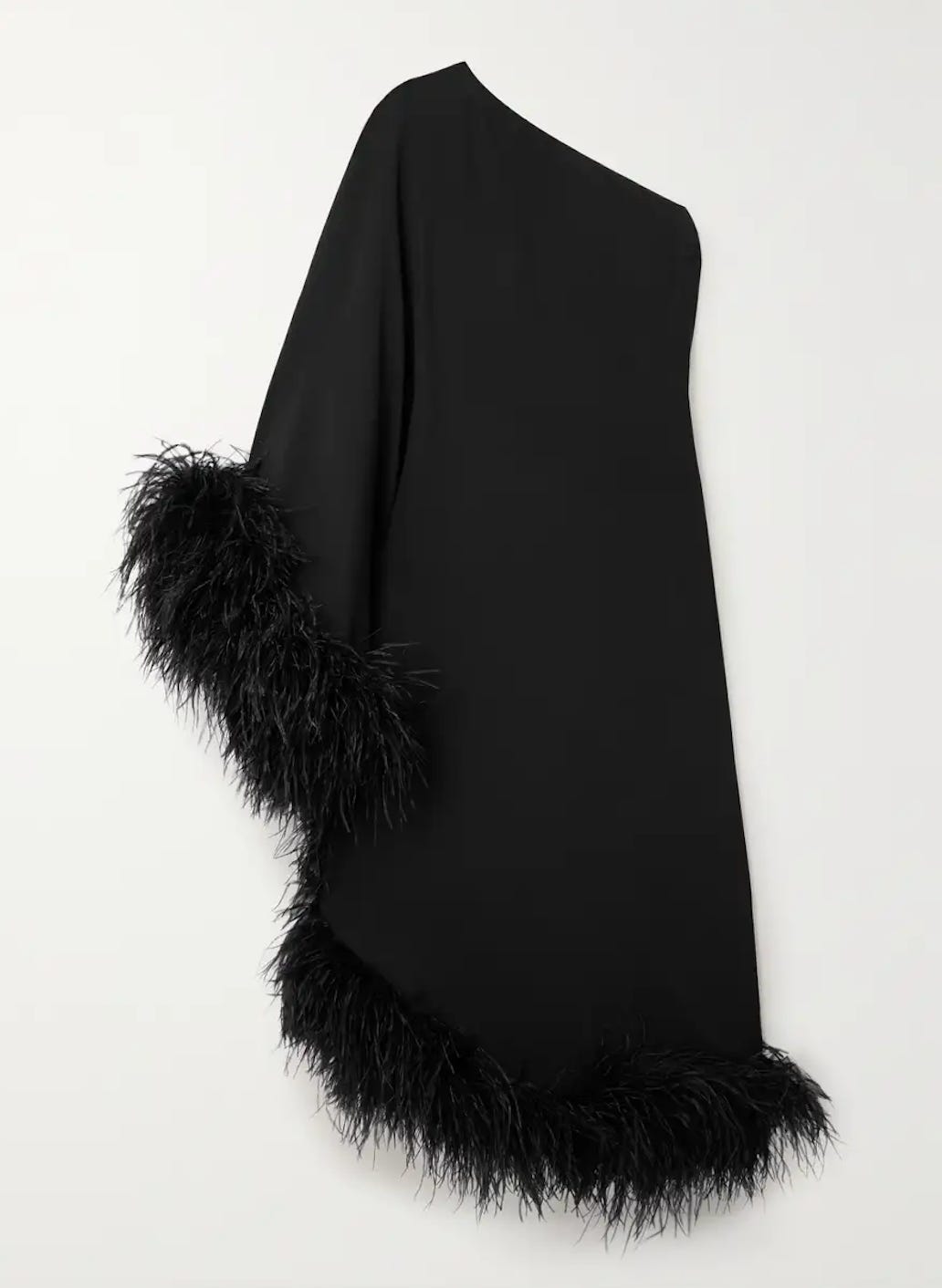 Taller Marmo Ubud One-Shouldered Feather-Trimmed Crepe Maxi Dress ($1155 on sale, 50% off)